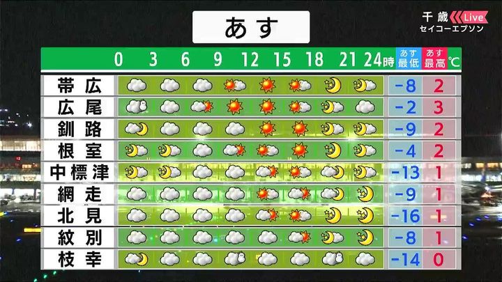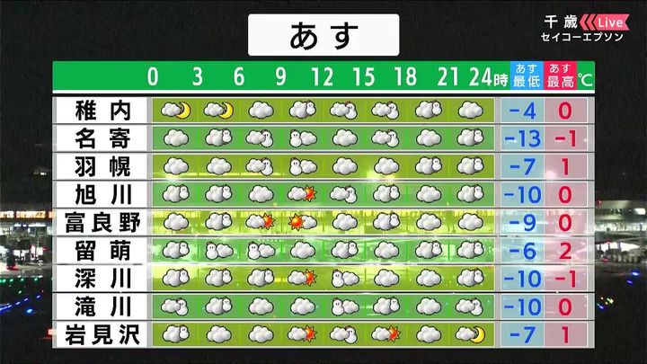 背景は13日午後5時頃の千歳情報カメラ