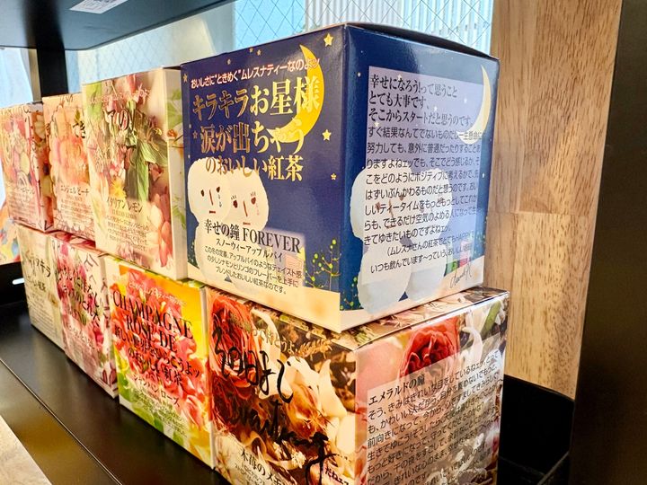 お店には、かわいいパッケージの紅茶がずらりと並んでいます。