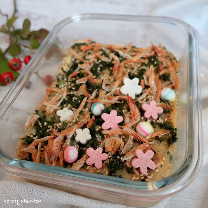 ※今回は乾燥わかめを混ぜ込み、他はトッピングしました。