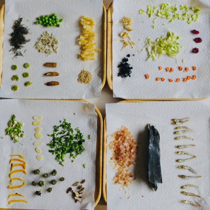 野菜のいらない部分を乾燥させたり、昆布やかつおぶし、煮干しを粉砕したものをだしにして味噌玉に。