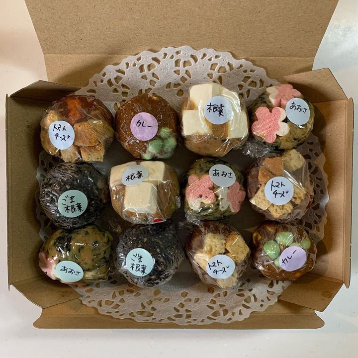 レースペーパーを敷いた箱に、カレーやトマトチーズ、ごま根菜などバラエティー豊かな味噌玉を詰めてラッピング。からだ想いのおいしい贈り物、やさしい気持ちが伝わってきます。