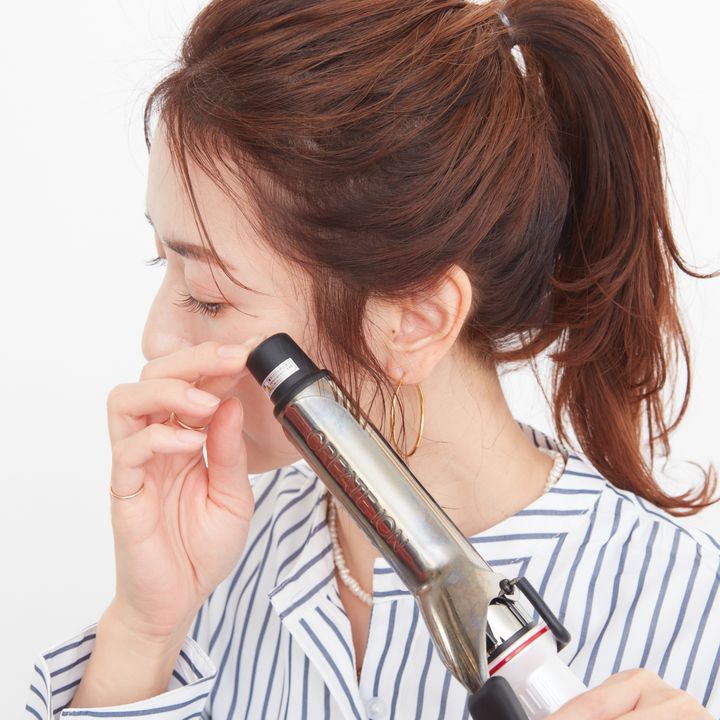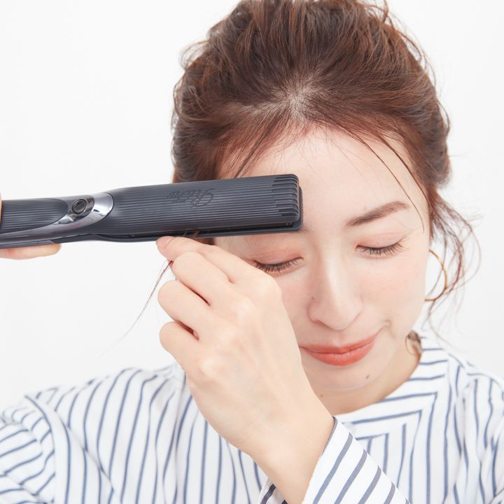 5.余裕があれば、前髪と顔まわりの後れ毛をアイロンで巻くとよりきれいな仕上がりに。