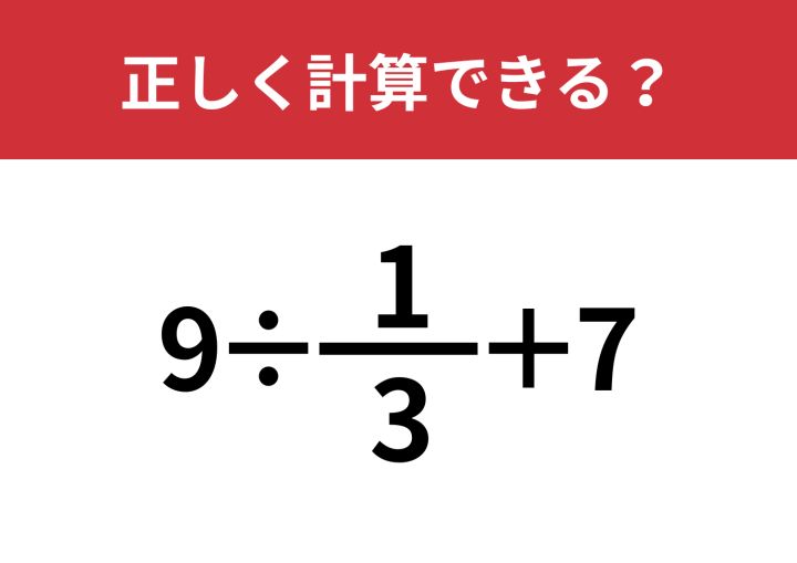正解できる人はかなり少ない!?「9÷1/3+7」正しく計算できる?