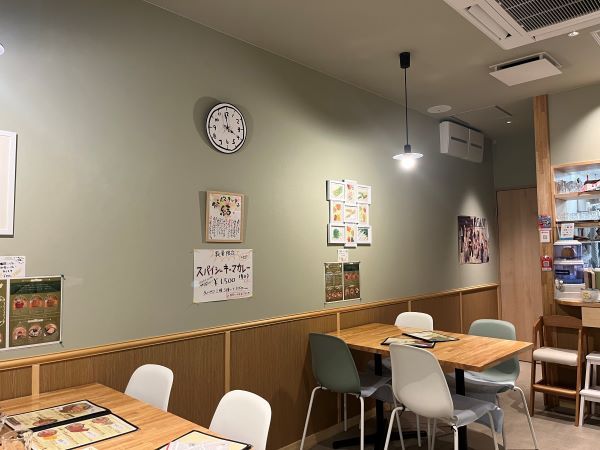 店内はおしゃれでカフェのよう♪ 落ち着いた雰囲気でゆっくり美味しいスパイスカレーがいただけます。 壁にはオーナーのお父様の描かれた絵が飾られています♪