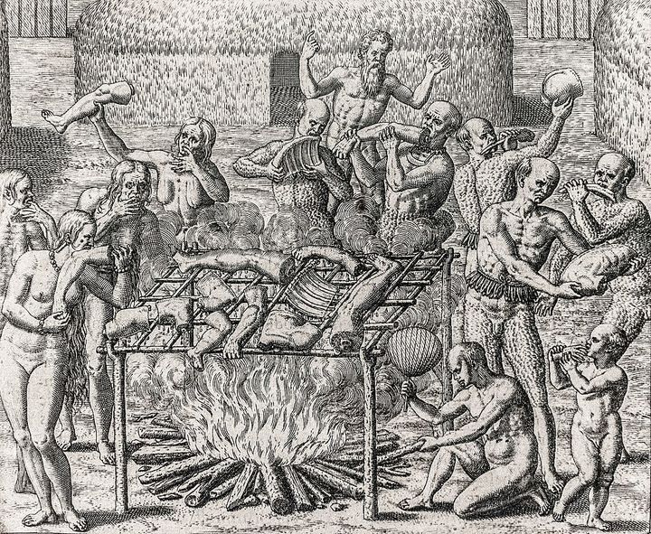 当然ながら西洋文化において食人行為はタブー視されており、コロンブスが持ち帰った噂はまたたく間にヨーロッパ中に広まって、「カリブ族=人食い人種」との認識が定着しました。