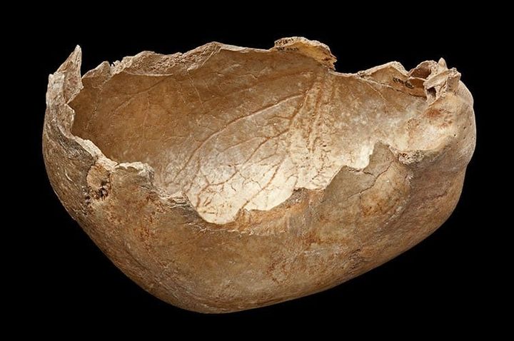 ガフ洞窟で見つかった頭蓋骨(人の歯形が無数についている) / Credit: NHM – Oldest evidence of human cannibalism as a funerary practice(2023)