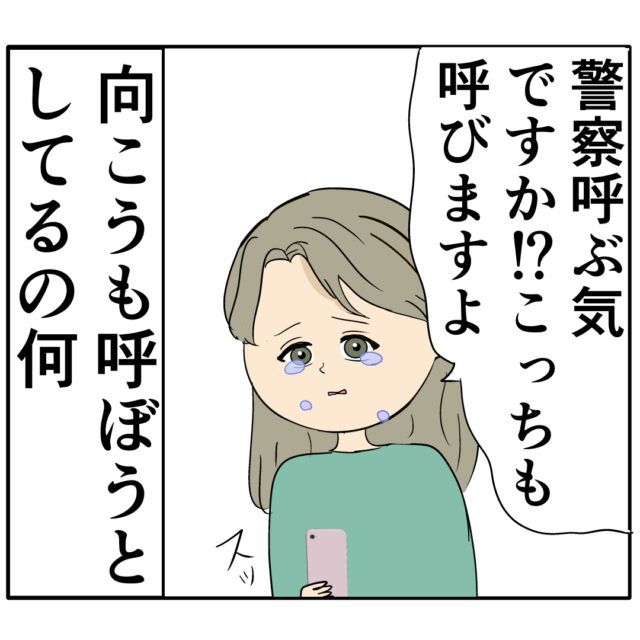 「っていうか・・」と思うめいさんに、「警察呼ぶ気ですか!?こっちも呼びますよ」と涙を流しながらスマホを掴むジュリ実さんを見て、「向こうも呼ぼうとしてるの何」と不思議に思うめいさんでした。