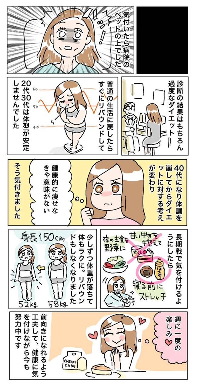 3. 「食べなきゃ痩せる!」極端なダイエットで病院送り。40代で気付いた無理のない体重管理術【体験談】