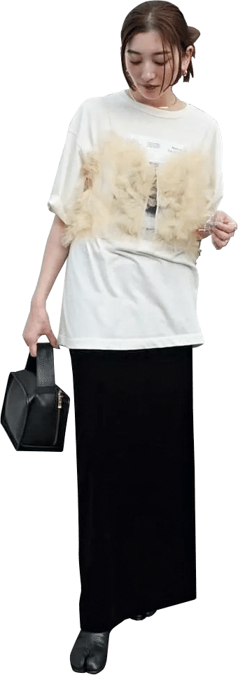 ビスチェはインナーとして使用するのではなく、Tシャツやブラウスの上から重ねるのがポイント。シンプルなスタイリングにアクセサリー感覚で取り入れるだけで、一気に今っぽいムードに昇華。すぐにマネできる脱マンネリテク!