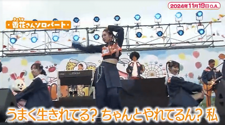 2024年の『おはパー』は、4万7000人を超える来場者(2日間の合計数)で大賑わい。やがて30歳女性は、『おは朝』メンバーと微妙にデザインが異なるお揃いの衣装を身にまとってステージへ! 彼女たちの衣装は、30歳女性と同じく『おは朝』に夢を応援してもらっている、20歳の女子専門学生が作った特別なものだ。女子専門学生と自身の家族、そして大勢の観客の前で、『HOLIDAY in OHAPA!!』のパフォーマンスがついに始まった!