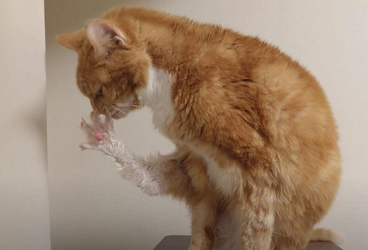 3. お風呂の後は自分仕上げ!念入りに毛繕いを頑張る猫さん