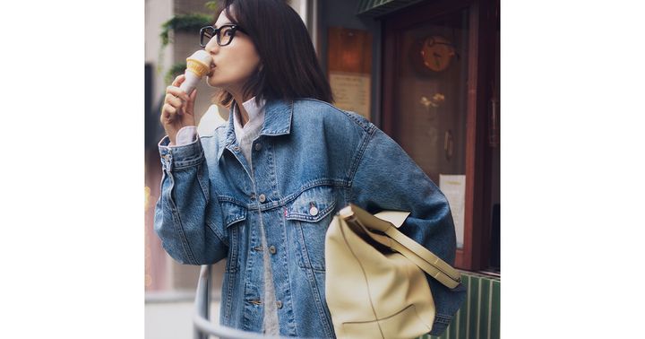 デニムジャケット¥16,500(リーバイス®×ジャーナル スタンダード レリューム/ジャーナル スタンダード レリューム ルミネ新宿店)ニット¥94,600(カオス/Chaos GINZA SIX)シャツ¥30,800(スローン/ザ ショップ スローン 新静岡セノバ店)ハーフパンツ¥38,500(SEA/エスストア)メガネ¥42,900(アイヴァン/アイヴァン 東京ギャラリー)ピアス¥22,000(ブランイリス/ブランイリス トーキョー)バッグ¥372,900(トッズ/トッズ・ジャパン)