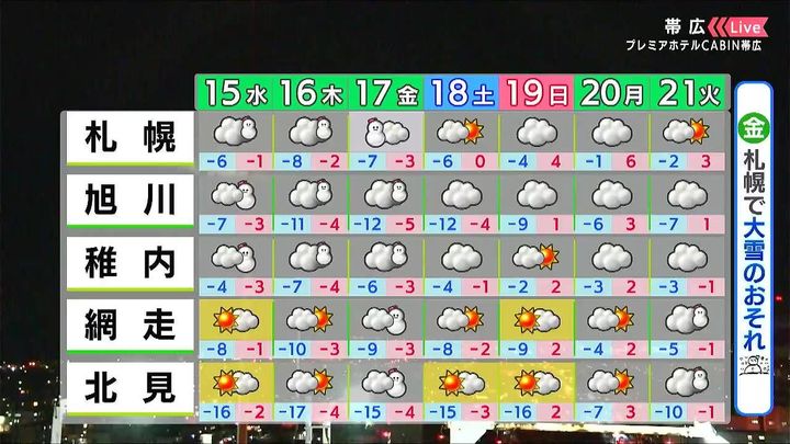 3. 【北海道の天気】あす15日の札幌は真冬の寒さ 道北や空知で大雪/2025年1月14日更新