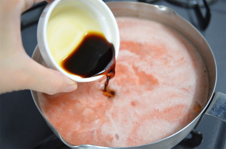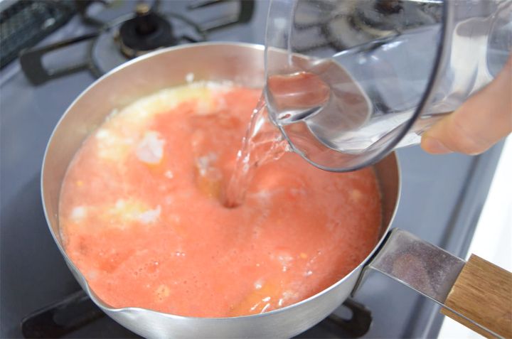 3. 鍋にサラダ油を熱し、にんにくと2を炒めたら、1のトマトと水を加えてひと煮立ちさせる。[A]の調味料を入れ、弱火で2~3分煮る。