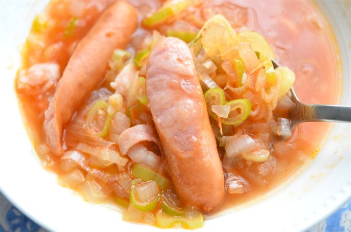 玉ねぎと長ねぎの旨味がたっぷりで、甘味も感じます。ベーコンとウインナーの旨味も強いので、ご飯が欲しくなる~♡