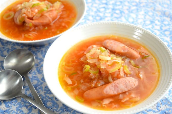 玉ねぎ&長ねぎのダブルねぎ使い♪「トマトとベーコンスープ」