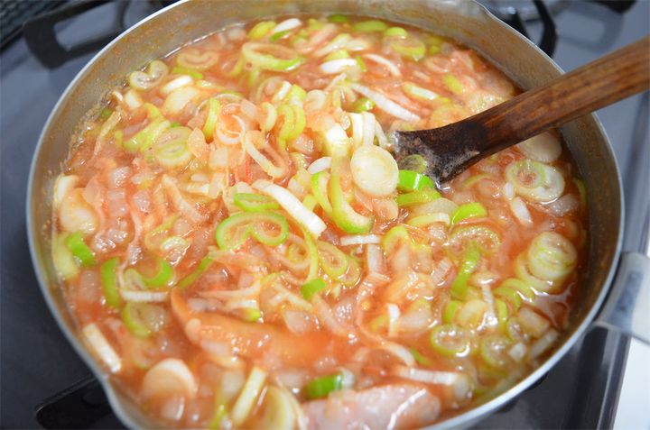 4. 長ねぎを小口切りにし、3に加え、ひと煮立ちさせたら完成。