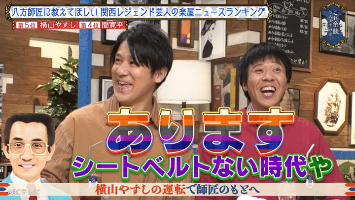 八方いわく、「シートベルトない時代や」「ブワ~行くけど、信号赤やったらギャー止まってな」とのことで、横山さんの運転はとにかく豪快! さらには赤信号に、「ボケー! 横山やー!」「漢・横山ァ!」と名乗り、「はよ変われー!」と横山さんは怒鳴ったという。その後、八方は横山さんのおかげで師匠の自宅にたどり着き、破門を回避できたのだとか。当時の八方は1年目で、横山さんは売れっ子大スター。一応顔見知りとはいえ、若手のためにここまで動いてくれる大物芸人は、今ではなかなかいないのではないだろうか。