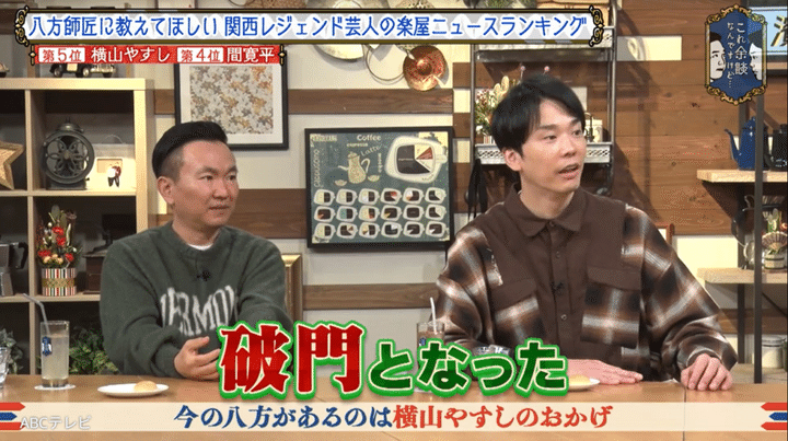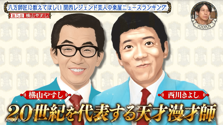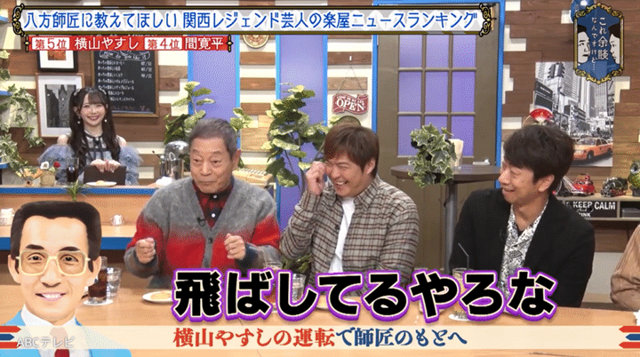 なお、このエピソードは、1月8日に放送されたバラエティ番組『これ余談なんですけど・・・』(ABCテレビ)で紹介された。「日本一楽屋ニュースを知るMr.余談」こと八方が語った関西レジェンドたちの珠玉エピソードは、多くの注目を集め、同放送回は個人視聴率4.2%という、番組開始以来の最高視聴率を記録した。(ビデオリサーチ調べ)