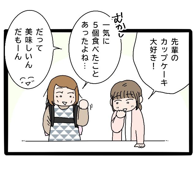 「先輩のカップケーキ大好き!」カオリさんが言うと「むかし一気に5個食べたことあったよね・・・」「だって美味しいんだもーん」と昔話に花が咲きます。