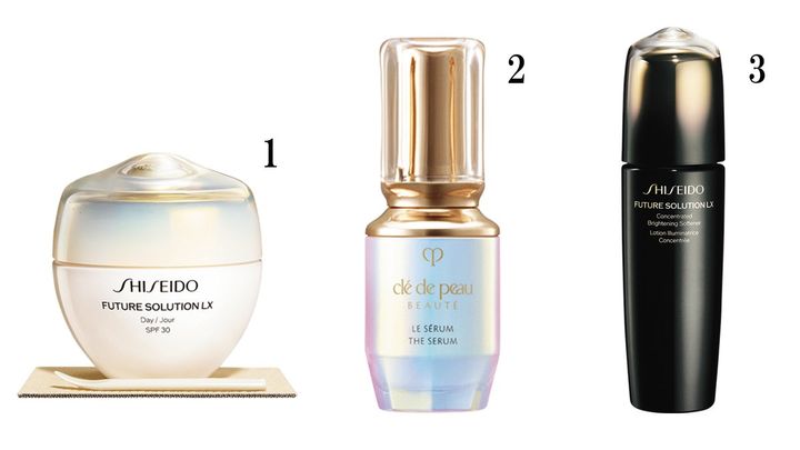 1.SHISEIDO フューチャーソリューション LX トータル プロテクティブ クリーム 51ℊ¥31,900 2.クレ・ド・ポー ボーテ ル・セラム II 30㎖ ¥19,800 3.SHISEIDO フューチャーソリューション LX コンセントレイティッド ブライトニングソフナー(医薬部外品) 170㎖ ¥14,300