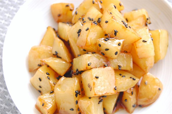 さつまいもで作る大学芋に比べ、さつまいもほど甘味がない分、あっさりした仕上がり。甘じょっぱいタレは、じゃがいものほのかな甘味を消すことなく、むしろ引き立ててくれているようです。