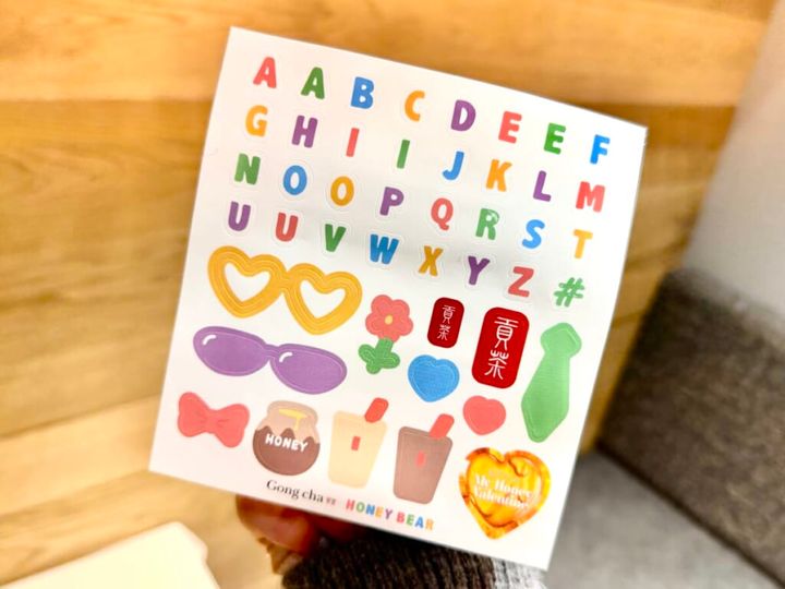 ハニーベアボトルは、購入するともらえるオリジナルステッカーを使って自分好みにデコレーションして楽しむのが醍醐味。アルファベットやサングラス、リボンやネクタイなど、可愛くデコっちゃいましょう!