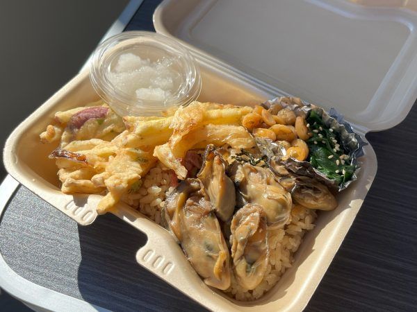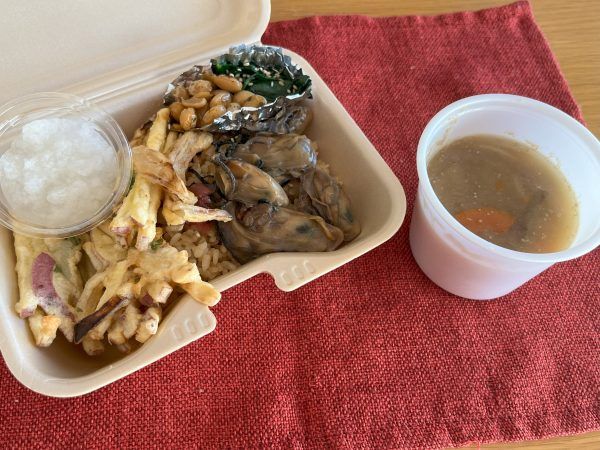 牡蠣めし 野菜の掻き揚げ 大豆煮 野菜のナムル