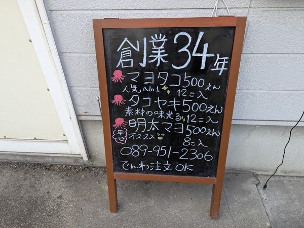 店頭にあるメニューを見てみるとなんと創業34年だそう。 愛されているたこやき屋さんなんですね★ 「たこやき村」さんで食べられるたこやきは「マヨタコ」「タコヤキ」「明太マヨ」の3種類。
