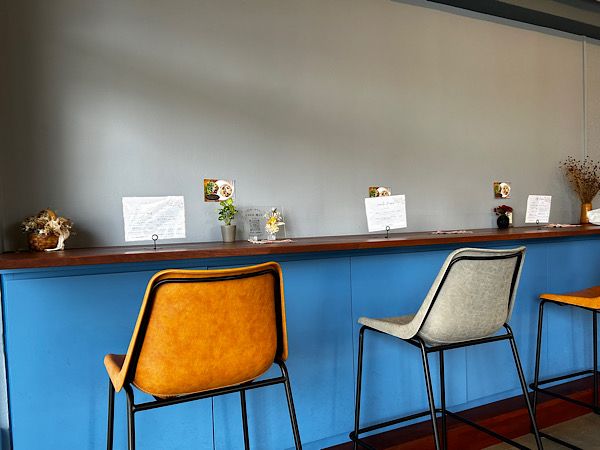 店内は、青と白が基調となった心落ち着く空間が広がります。