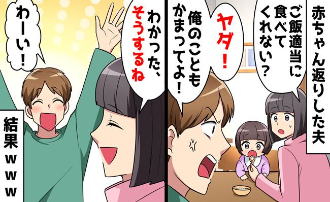 3. 娘に嫉妬した夫が赤ちゃん返り「俺のことも構ってよ!」私「了解」望みを叶えた結果?!