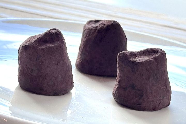 ココアパウダーをまとい、ひとつひとつ形が微妙に異なる手作り感あふれるトリュフたちです。