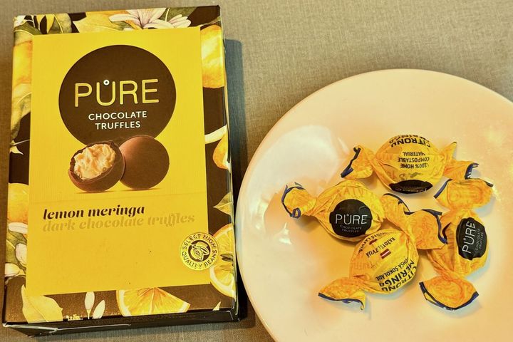 かわいいパッケージも魅力!「ピュア社 ダークチョコレートトリュフ レモンメレンゲクリーム」