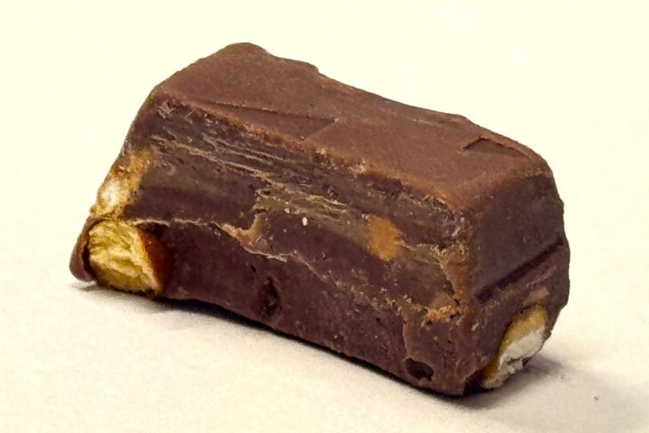 チョコレートのなかに、砕いたプレッツエルがポツポツと混ぜ込まれています。やさしい甘さの中に、プレッツエルの塩味とポリポリとした食感がアクセントになっています!