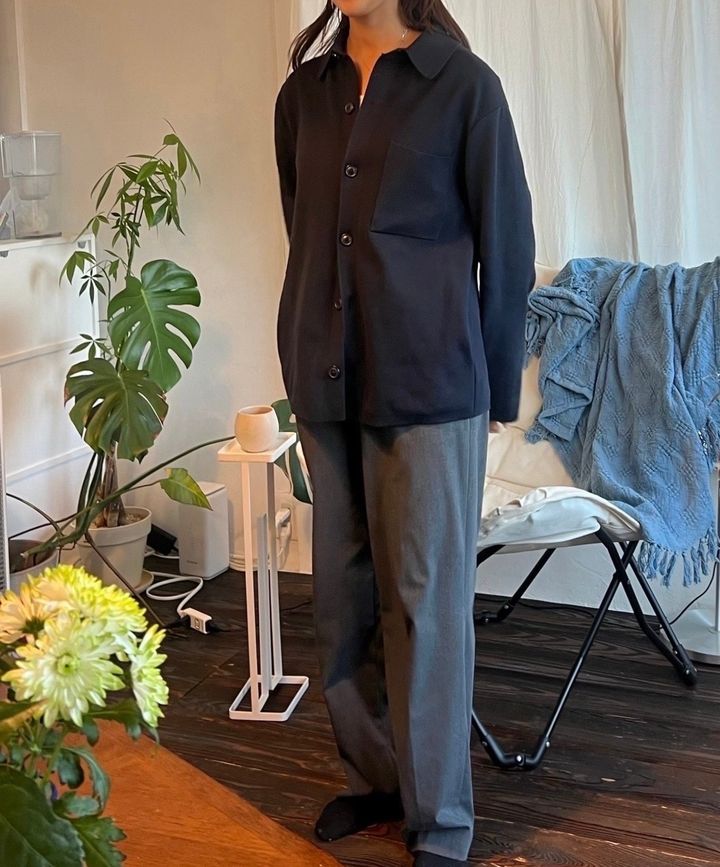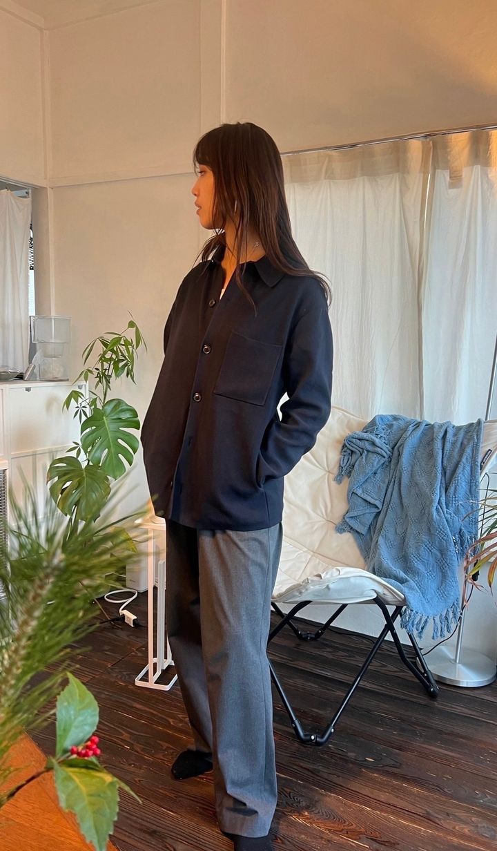 ニット素材なのに毛玉ができにくく、シャツの形でありながら着心地も抜群なのも嬉しいポイントです💡