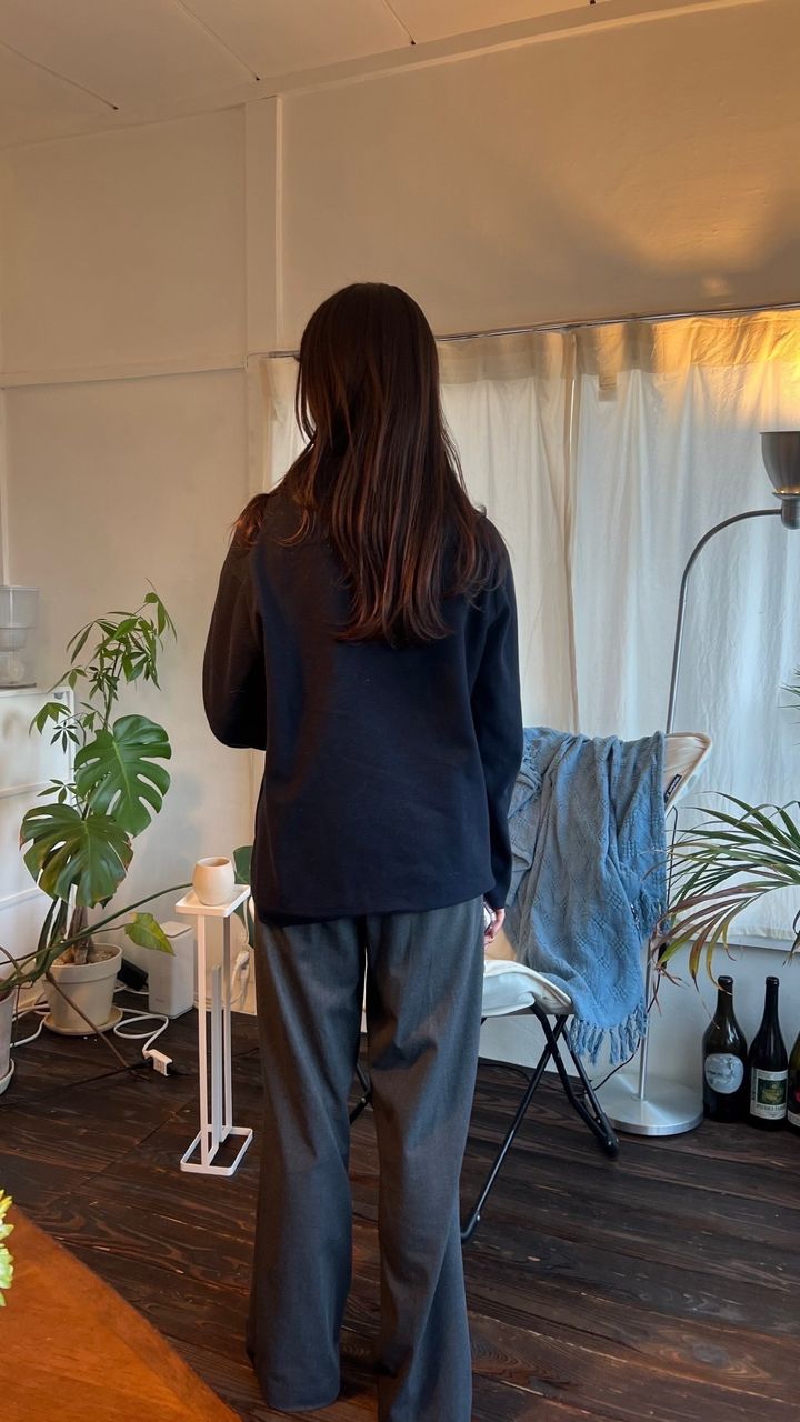 私は若干大きめに着たかったので、157センチでMサイズを着用しています。色はネイビーを選択しました🤍