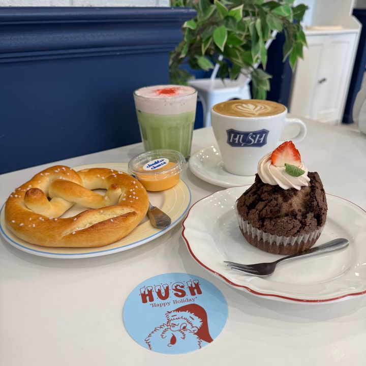 大阪・梅田の商業施設HEP FIVE内にあるカフェ『cafe&bar Hush』は、可愛すぎるパリ風の店内と韓国風ジェニックスイーツが楽しめる人気店🎀