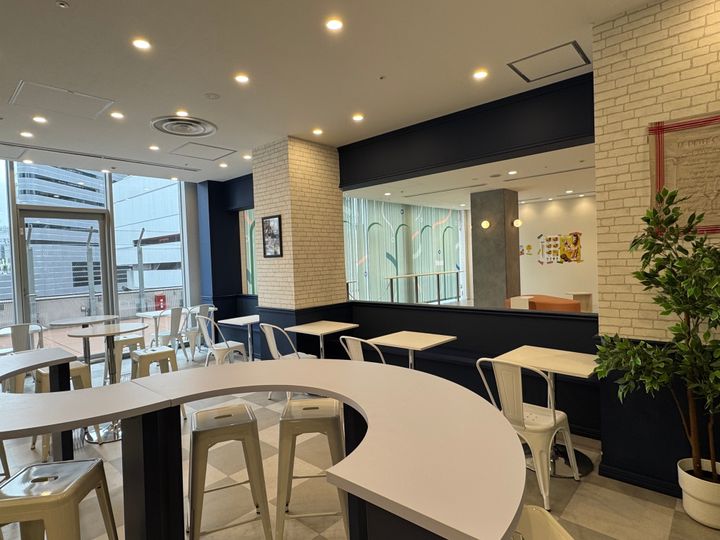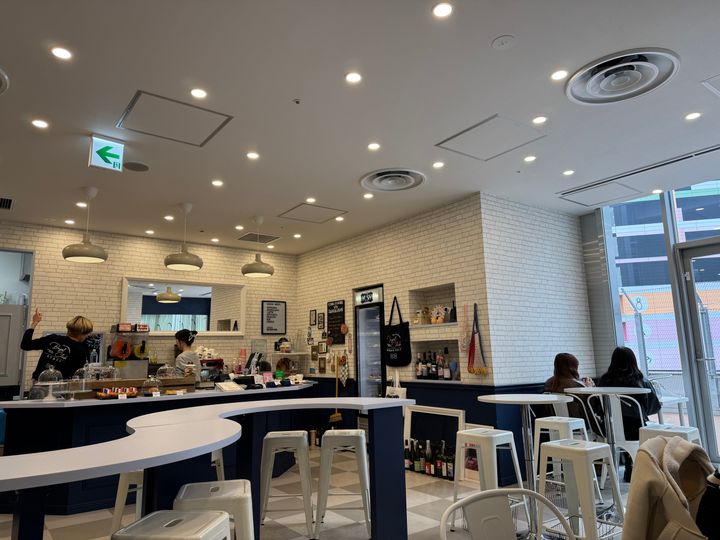 青と白を基調とした店内は開放感抜群!独特な形でおしゃれなカウンター席があったり、席数も多くて広々とした印象でした💭
