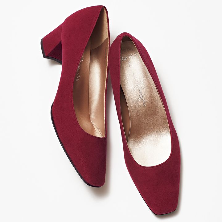 つま先部分にクッションが施され足あたりが優しい。ゆったりとした足幅でもエレガントなシルエットを追求。パンプス[H5㎝]¥33,000(銀座かねまつ/銀座かねまつ6丁目本店)