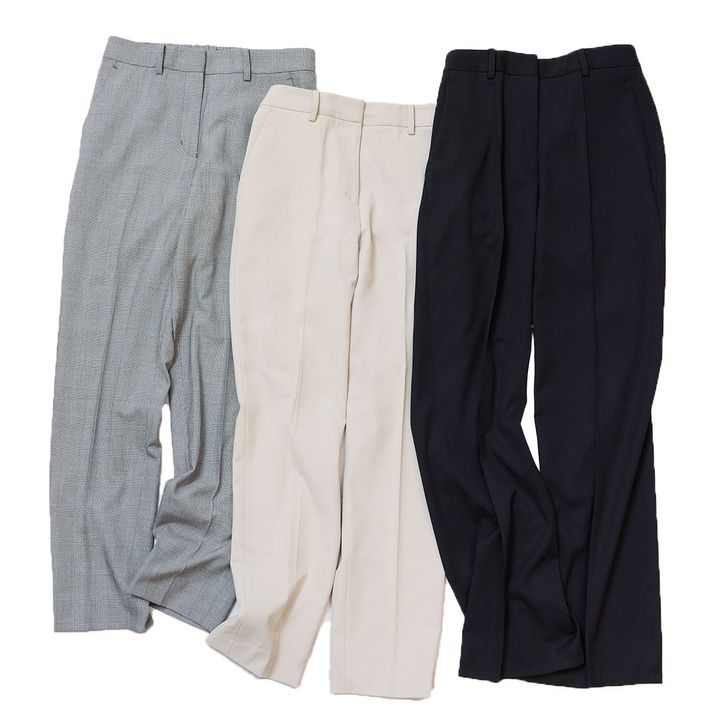 「縦横ストレッチできちんと見えするのに着心地がスウェットくらい楽な『ORIHICAフラミンゴPANTSⓇ』もシルエット・色違いで3本。」(すべてオリヒカ)