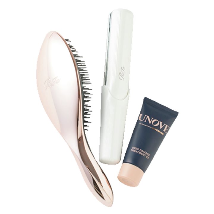 「ホテルのシャンプーがいまいちでも挽回するUNOVEのトリートメントと、ReFaのミニコテとブラシも必須!」