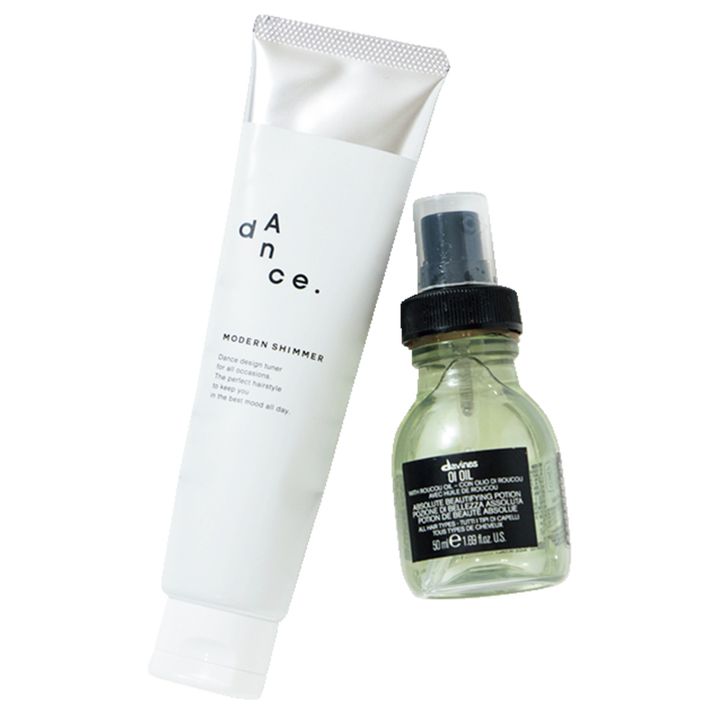「ホテルのシャンプーが髪に合わなくても挽回するダヴィネスのオイ オイルと、ダンスデザインのジェル状オイル。荷物の中で漏れにくいのも安心!」