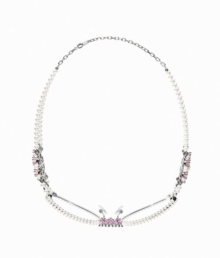 ジュエリーディテールがテンプルに施されたものから、パールネックレスを連想させるステートメントピースまで、ドラマティックな華やかさを通じてブランドならではの美的感覚を表現している。