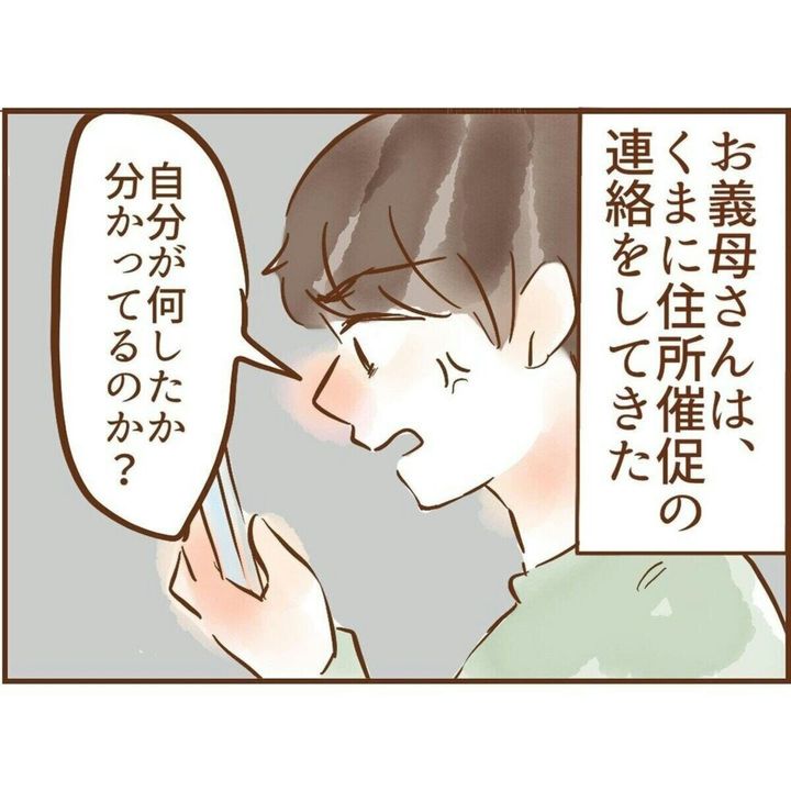 ゆめのさんの義母は、新居の住所を聞き出そうとしつこく連絡をしてきます。ゆめのさん夫妻はそう言った義母の行動にうんざりして、疎遠になってしまったと言います。