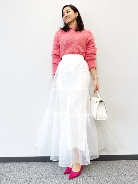 3.「シャギーニット×チュールスカート」で叶う大人可愛いコーデ