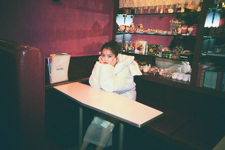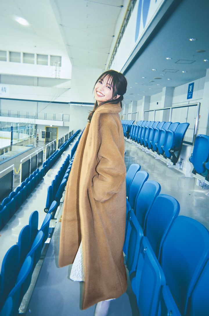 大原優乃。ar12月号より コート¥23,100/リエンダ(バロックジャパンリミテッド)トップス¥19,910、スカート¥23,980/ネイヴ バッグ¥3,630/ヴァニーユー(アンティローザ) スニーカー¥17,200/ナイキ スポーツウェア(ナイキ カスタマーサービス)