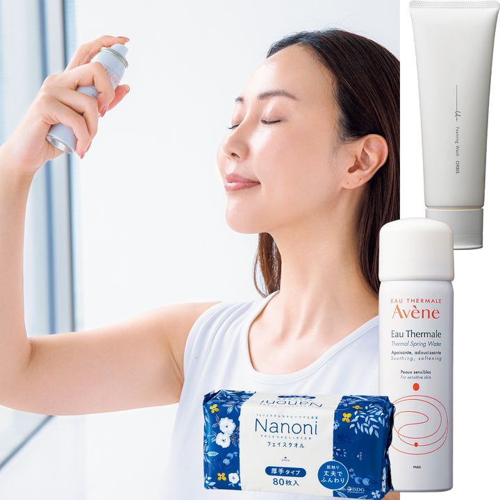 Tゾーンのみオルビスの洗顔料を使用します。使い切りタオルでやさしく水分をオフをしたら、すぐにアベンヌスプレー。