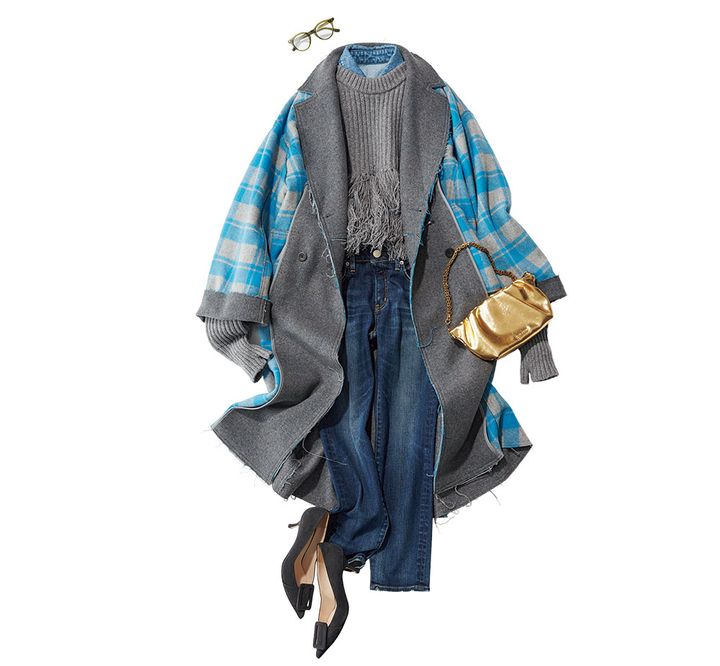 コート¥49,500(メゾンスペシャル/メゾンスペシャル 青山店)ニットベスト¥33,000アームウォーマー¥22,000(ともにハイク/ボウルズ)シャツ¥22,000(アンタイトル)デニムパンツ¥25,300(レッドカード トーキョー/ゲストリスト)バッグ¥11,900(チャールズ&キース/チャールズ&キース ジャパン)パンプス¥61,600(ネブローニ)メガネ¥42,900(アイヴァン/アイヴァン 東京ギャラリー)