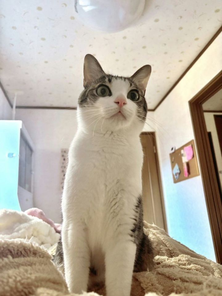 アメリカンショートヘアーの茶子ちゃんと、キジ白の琥珀くんと暮らす投稿者・ハナ(@chakohakulog)さんは、琥珀くんに定期健康診査のため朝ごはん無し、と伝えるのを忘れてしまったそうです。当日の朝になって伝えると琥珀くんは、一大事だと察したかのような表情で見つめ…?琥珀くんには可哀想ですが思わず笑ってしまうお写真です。