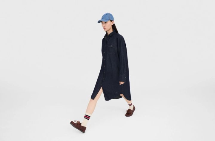 デニムシャツワンピースは、膝が見え隠れするミドル丈。寒い日はレギンスやタイツ、暖かい日はソックスと、足元に合わせるアイテムひとつでコーデの雰囲気を変えられるのがポイント。オーバーサイズなフォルムは、重ね着もしやすく、ボタンを全部開ければ、アウター替わりにはおれちゃうからヘビロテしてしまいそう。胸元のデザインには、デザイナーの遊び心がさり気なく感じられます♪